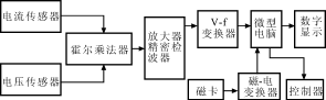 在前述功率计后加上V/f变换及分频计数,即可构成电度表,加上磁卡读出装置,可构成磁卡电度表。