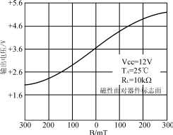 图3 霍尔线性电路UGN3501的磁电转换特性曲线