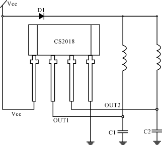 图15 用CS2018霍尔开关锁定电路直接驱动电机的线路示意图(图中的线圈为电机定子绕组)