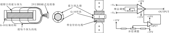 (a)G-10安装结构(b)电缆型多霍尔探头(c)霍尔电压放大电路