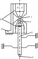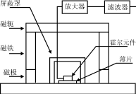在遮断方式中,工作磁体和霍尔器件以适当的间隙相对固定,用一软磁(例如软铁)翼片作为运动工作部件,当翼片进入间隙时,作用到霍尔器件上的磁力线被部分或全部遮断,以此来调节工作磁场。被传感的运动信息加在翼片上。这种方法的检测精度很高,在125℃的温度范围内,翼片的位置重复精度可达50μm。