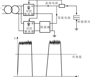 在电子点焊机电源中,霍尔电流传感器起测量和控制作用。它的快速响应能再现电流、电压波形,将它们反馈到可控整流器A、B,可控制其输出。用斩波器给直流迭加上一个交流,可更精确地控制电流。用霍尔电流传感器进行电流检测,既可测量电流的真正瞬时值,,又不致引入损耗,如图41所示。