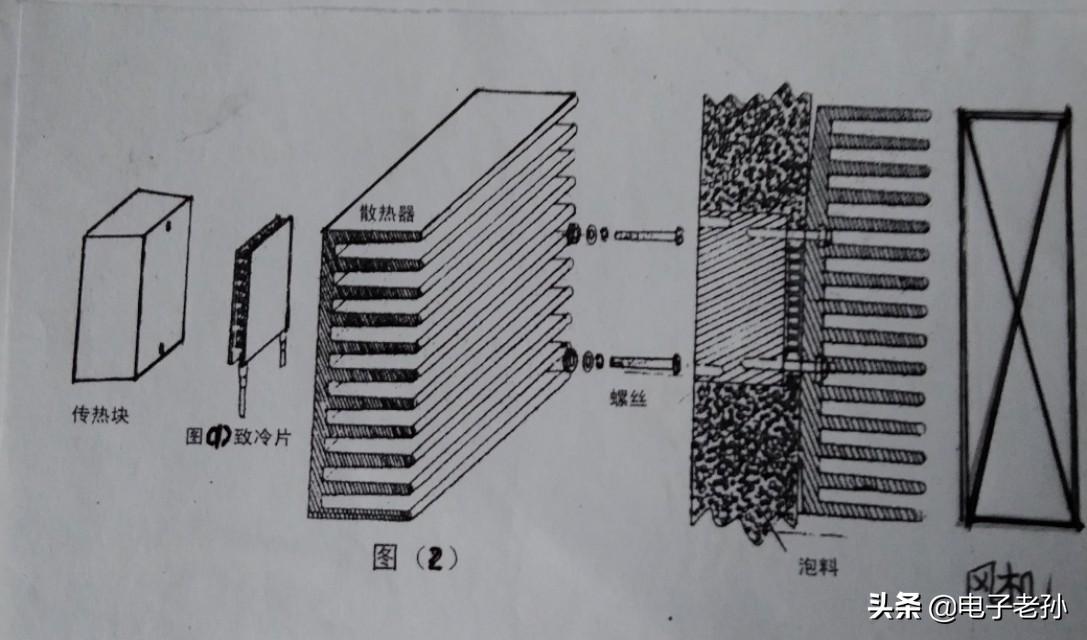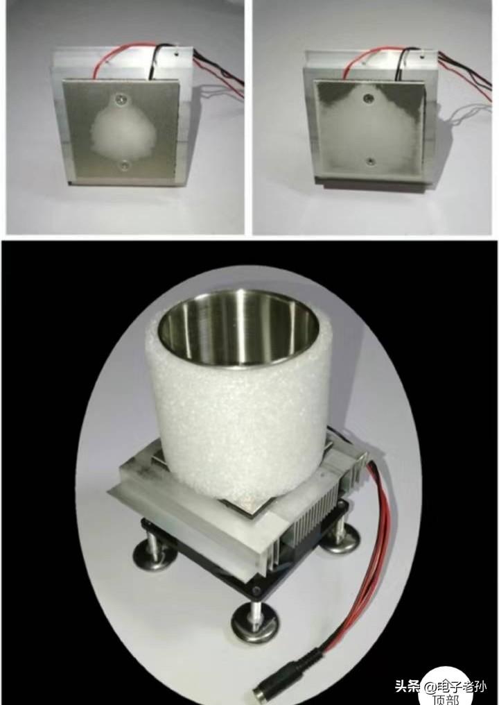 但是半导体制冷块要一面散热(铝散热器),一面制冷(铝传冷块)等多件构成一体才能得到好的制冷效果,見图②