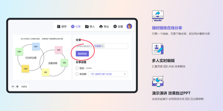 一款超好用的在线设计协作工具 ,支持多人实时编辑,在线演示演讲,超多素材和表格,还有很多的画笔工具 等,在需要的时候,分享一个链接,就可以轻松同步最新内容,用起来十分的方便~