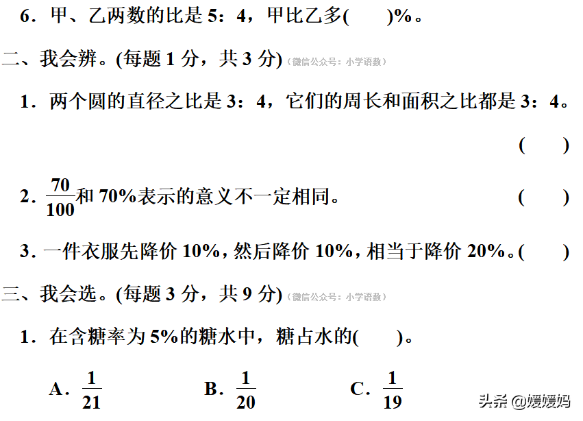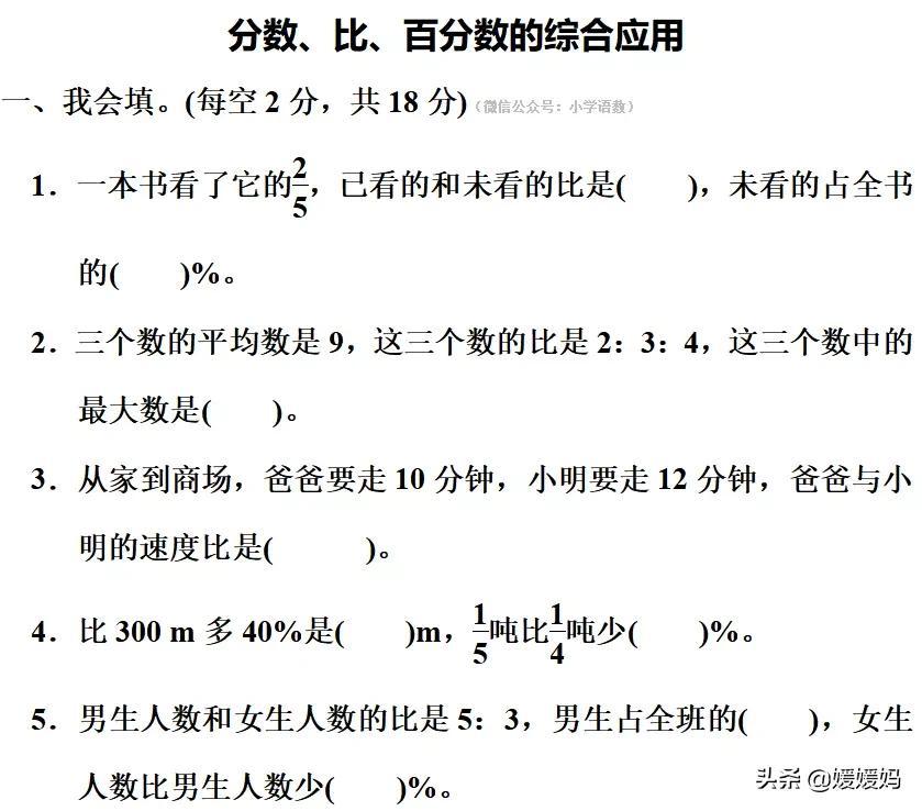 六年级上数学期末专项练习之「分数、比、百分数的综合应用」