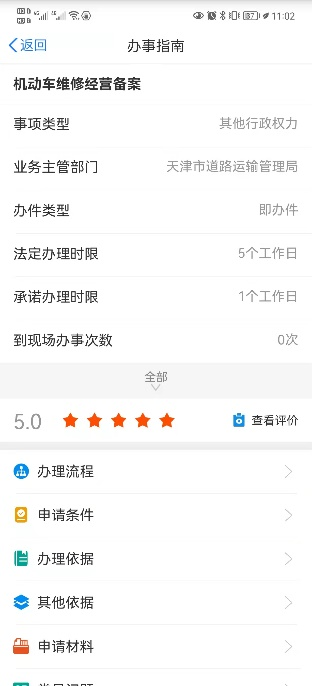 图为“津心办”机动车维修经营网上备案办事指南