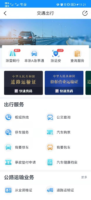 图为“浙里办”汽车维修电子健康档案服务模块