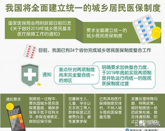 人力资源和社会保障部2016提出加快推动城乡基本医保整合,努力实现年底前所有省(区、市)出台整合方案,2019年开始建立统一的城乡居民医保制度。