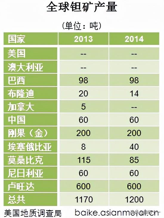根据USGS2015年公布的数据,2014年全球钽矿产量共计1200吨,比2013年增加了30吨。主产国:卢旺达,巴西,刚果(金),莫桑比克。其中,卢旺达的产量占全球产量的一半。钽的用途及应用领域