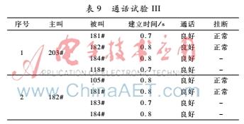 IP电话与背负式电台之间,以及电台彼此间的拨号通话试验结果如表8所示。当IP电话对背负式电台拨号时,系统在拨号后立即建立并接通通话,但试验中存在0.5~1 s的通话建立延时时间,这是由于试验系统中背负式电台采用的是基于Android系统的软电话设计,存在一定的软件内部延时,该延时可在后续的软件优化中予以消除。