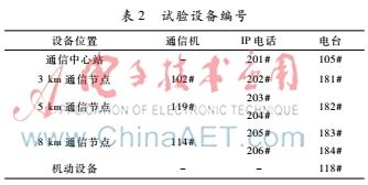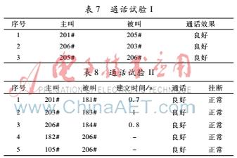 IP电话点对点试验结果如表7所示。试验结果显示,在全系统满负荷数据传输的条件下,通信机接入的IP话机之间可相互拨号通话,且话音效果良好。