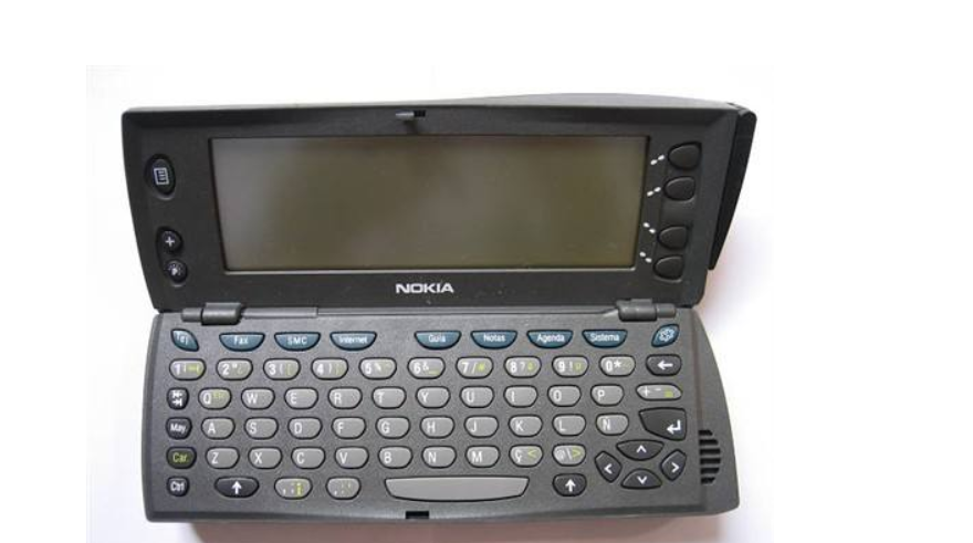 诺基亚9000:在没有智能机的年代NOKIA9000算得上是比较新颖的手机了,就像手提电脑一样侧开式;配置4.5英寸黑白屏幕,该机在当时还可以用于收发传真、电子邮件、手机短信,并提供了互联网接入功能。但是价格却相当昂贵,成为只有富贵人家才有的产品。
