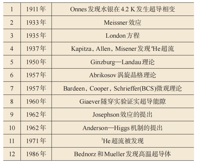 表1 超导和超流研究史上的一些重大事件