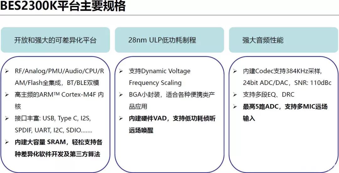 BES2300的适合应用不仅仅是音响,还有:电视、机顶盒配套的远场拾音方案;风扇、空调、灯具的分布式内嵌语音指令模块;故事机、老年/幼儿陪伴类智能产品。