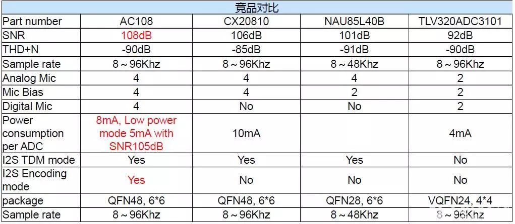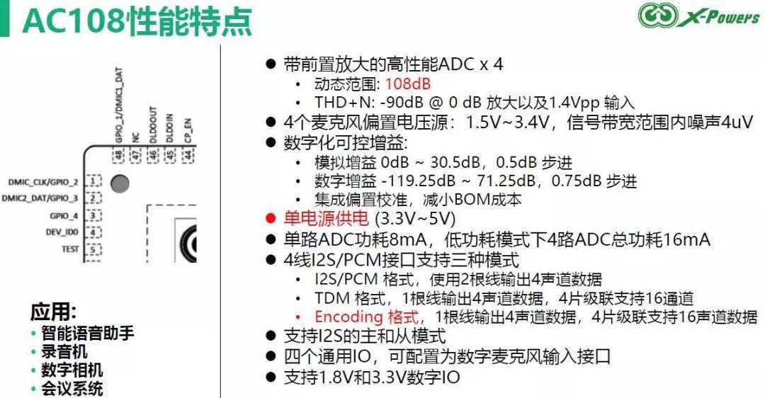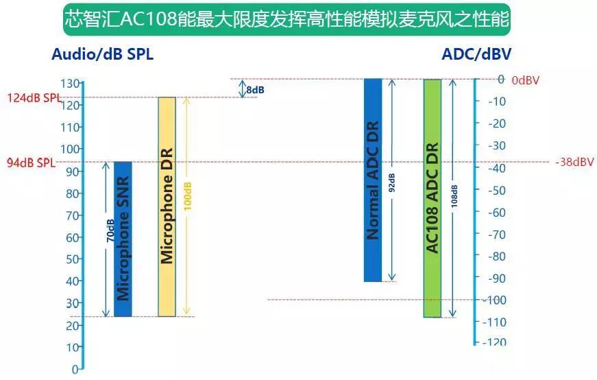 性能最佳选择:高性能模拟麦克风+ 高性能ADC。芯智汇推出的高性能四通道数据转换器ADC AC108可实现108dB动态范围,SNR是行业最高,可采集精准的语音信号避免回声饱和,最大限度发挥高性能模拟麦克风的性能。