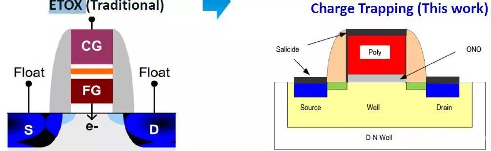 在工艺上,传统ETOX工艺复杂、擦写电压较高,功耗较高;普冉的工艺采用Charge Trapping结构,使产品结构简单,以低功耗为出发点,提高良率。