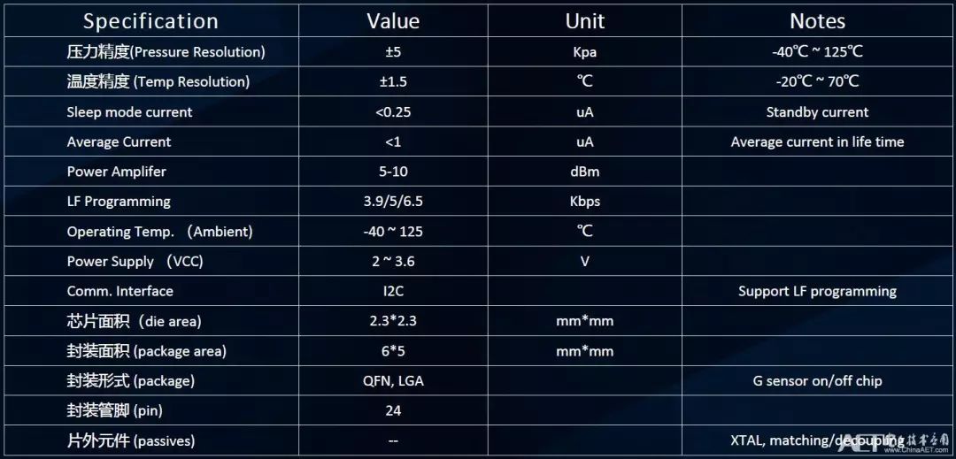 SNP70X是国内第一款车规级量产出货的TPMS,采用了24针LGA封装,封装尺寸业界最小,仅为6mm x 5mm x 1.9mm。SNP70X集成了压力、温度和加速度检测,多制式低频125KHz,支持低频烧录、支持轮胎定位,休眠电流小于250nA。