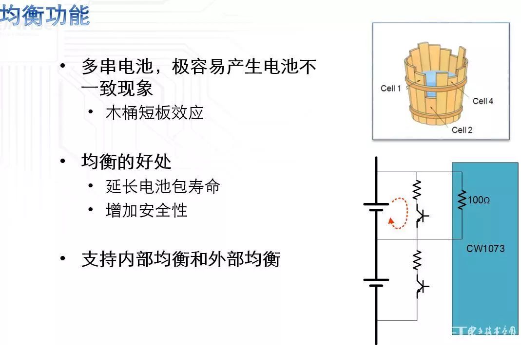 CW1073内置均衡功能,可通过外部电路扩流,提高电池包工作效率并延长使用寿命;提供两路放电控制端子,可驱动两路负载,专门针对吸尘器进行了优化;针对安全性问题,做了负载检测,每一次停机再启动都需要确认;断线检测也是一个非常重要的功能,在检测焊接不牢时电芯失去保护状态,BMS可以检出这个状态,停止电芯充放电。