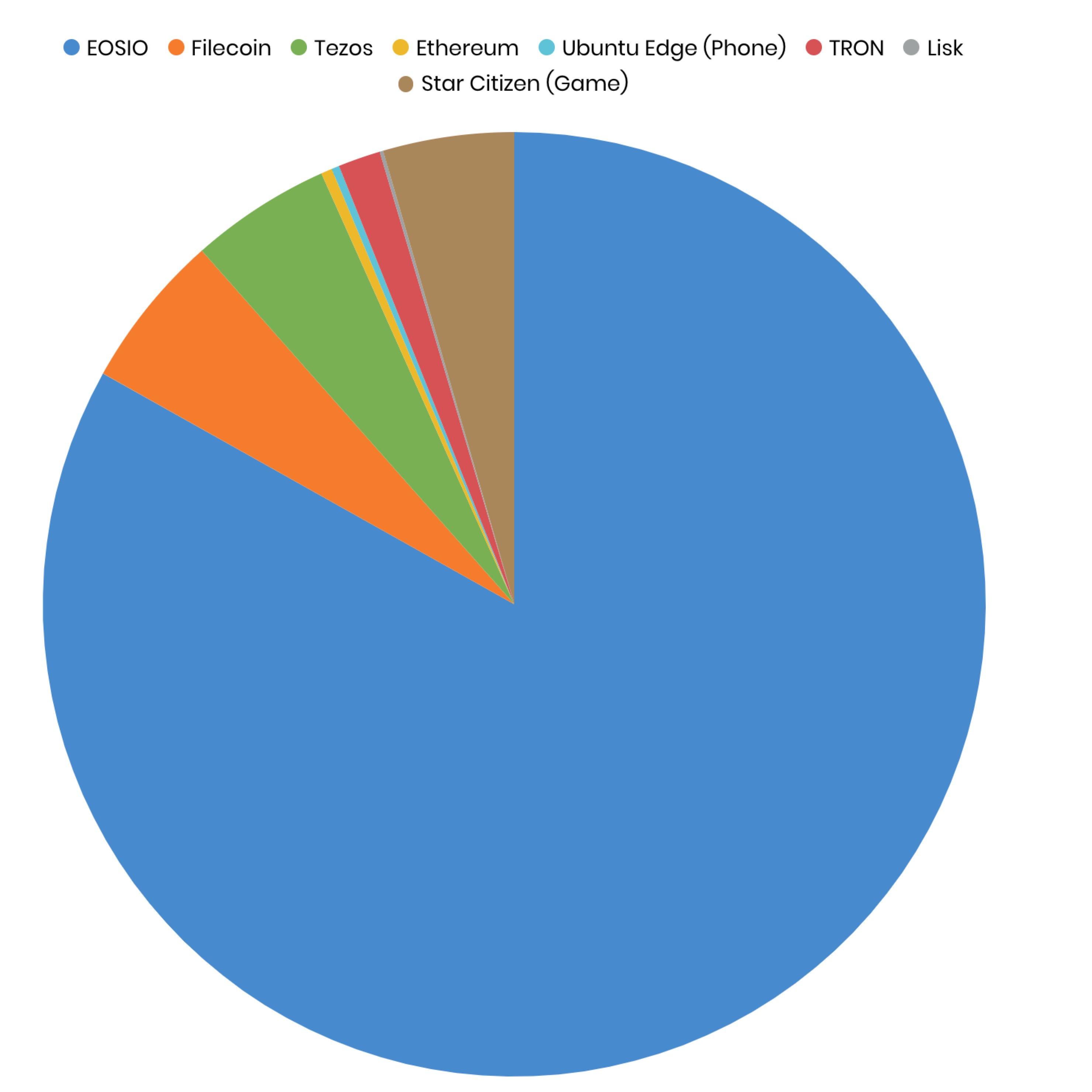 图中展示了EOSIO在所有众筹项目募资总额中的占比