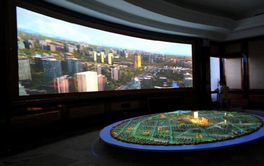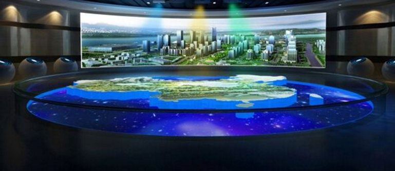 多媒体电子沙盘是一种将投影设备与物理规划模型相结合,通过精确对位,生成动态平面动画,并将其投射在物理沙盘上,产生动态变化的新物理模型。多媒体沙盘集多媒体显示与互动于一体。声、光、电、图象、三维动画,与计算机程序控制技术和实体模型。