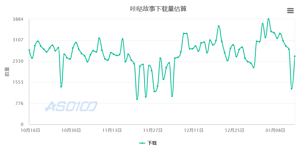 2017年10月16日-2018年1月15日,咔哒故事的下载量预估总计为24万。日均下载量在2330左右,在2017年11月中旬有较大波动。