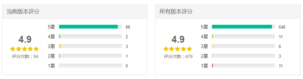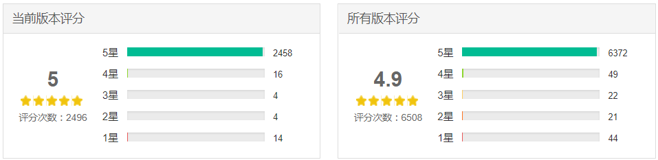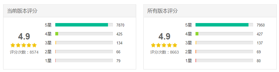 在用户评论方面,伴鱼绘本的用户参与数较高,所有版本评分次数达8663次,其中五星好评接近8000次,这也是APP整体评分高的原因。