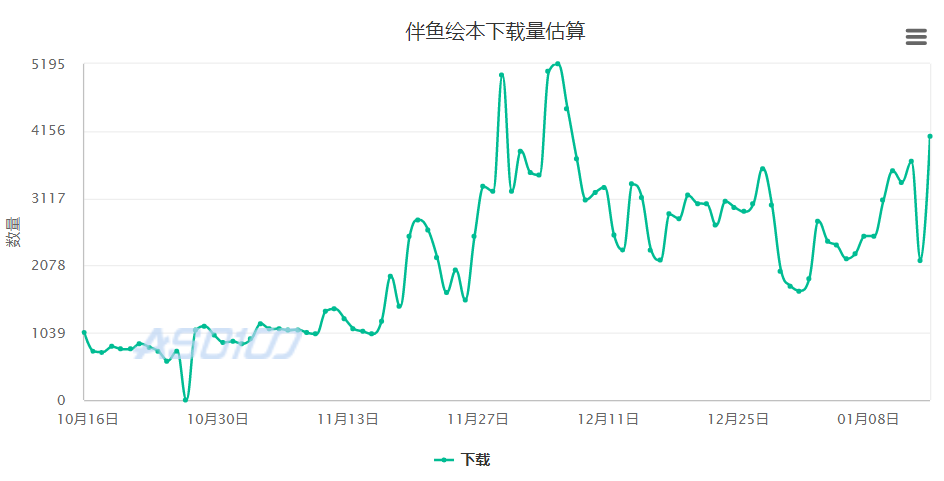 以下为近三个月来伴鱼绘本的下载量估算。2017年10月16日-2018年1月15日,伴鱼绘本的下载总量估计为20.3万。