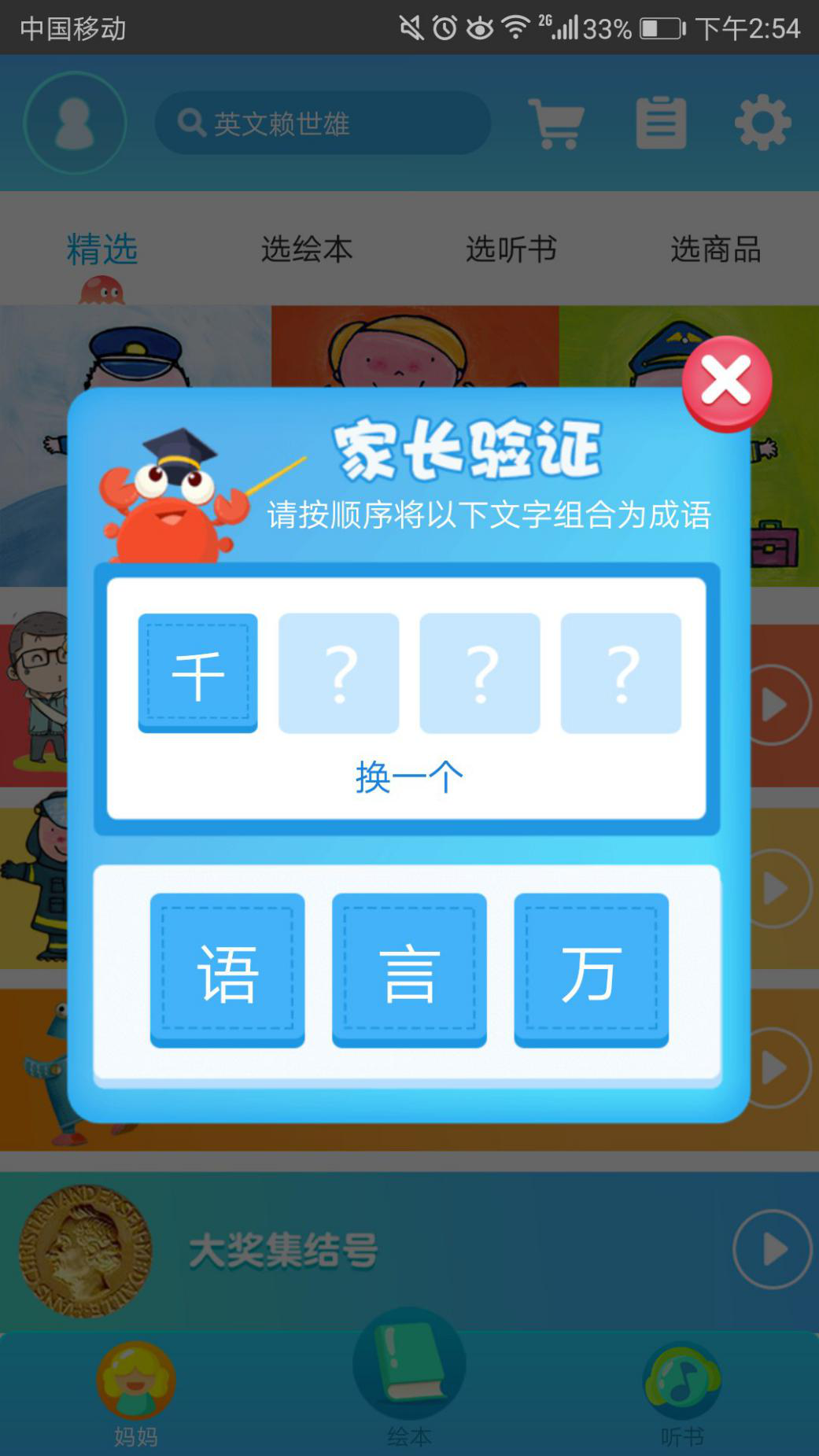 进入家长模块则需要验证,在这里可以为宝宝选择内容类目,可以选择年龄、偏好等等。同时商城也设置在家长板块。
