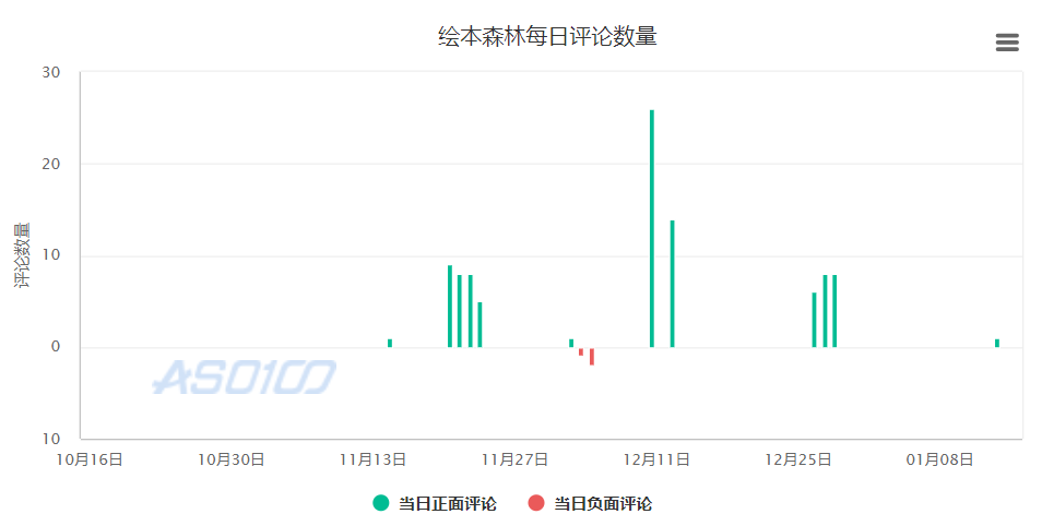 绘本森林整体用户评论偏中上,但2017年10月16日-2018年1月16日这三个月中,日评论数不算活跃,甚至会出现近一个月均无评论的情况。
