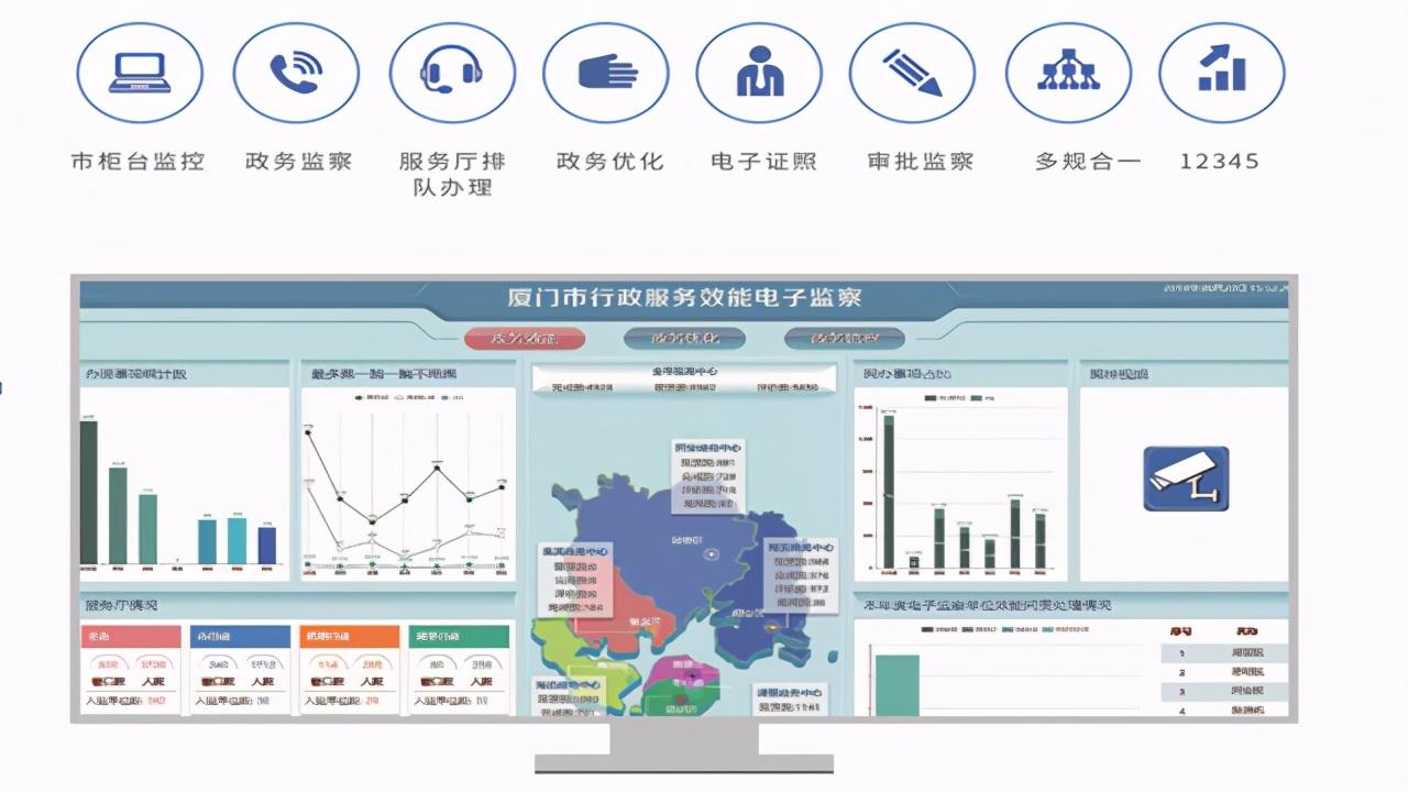 2011年,易事软件(厦门)股份有限公司依托自身软件技术优势,开发出这款行政服务效能电子监察平台,并根据用户单位需求不断改进升级。整个系统是运用信息技术和大数据技术搜集、分析、整合各项行政工作关键信息,实现柜台监控、政务监察、服务厅排队办理、政务优化、电子证照、审批监察、12345等业务应用,从而有序、标准化开展绩效管理评级活动,及时落实基层党风廉政建设。
