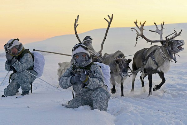俄军在北极地区军事力量的部署主要分为几个方面,首先是在北方航道沿线的岛屿(比如说北地群岛、新西伯利亚群岛、弗兰格尔岛等等)重启苏联冷战时期建造的基地(刚刚提到的"北极三叶草"基地正是这样一个例子,该基地可以保证150名士兵在没有补给的状态下生活18个月),其次是打造独立的北极作战部队,比如说俄军以第200独立摩托化步兵旅为基础成立的专业北极作战部队,未来还将吸纳海空力量。其次是加强北极作战部队军事装备力量的建设,俄国人在这个领域可谓是下了大功夫,他们不仅仅重视重型武器装备,对于单兵装备的建设也是十分上心。