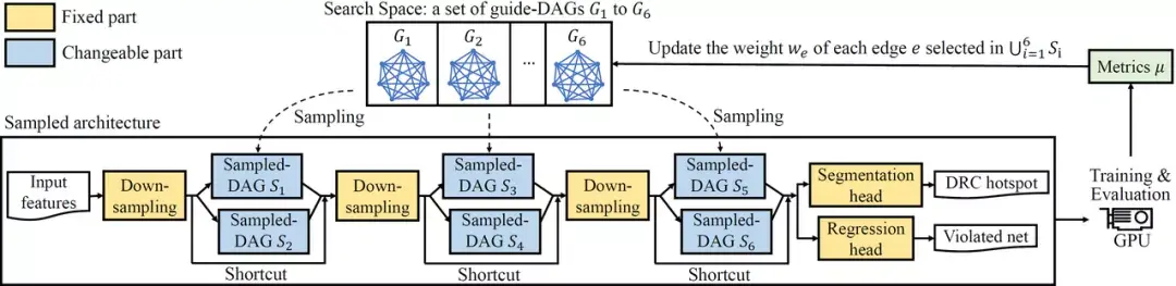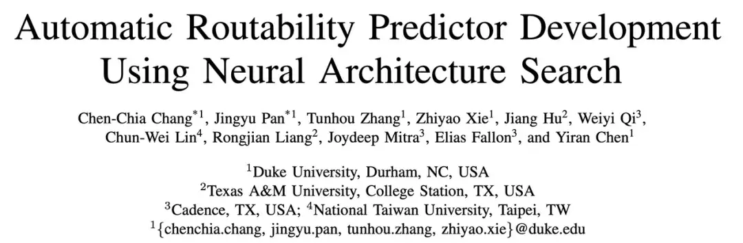 机器学习技术的兴起激发了其在电子设计自动化 (EDA) 中的应用热潮,并有助于提高芯片设计的自动化程度。然而,手工制作的机器学习模型需要大量的专业知识和巨大的工程消耗。在这项工作中,Duke 大学陈怡然教授课题组和 Texas A&M 大学胡江教授课题组利用神经架构自动搜索 (NAS) 来自动开发用于可绕线性预测的高质量神经网络架构。该搜索方法支持各种卷积操作和高度灵活的连接,使得神经网络架构与以前所有的人工模型明显不同。在大型数据集上的实验结果表明,生成的自动生成的神经网络架构明显优于多个具有代表性的人工设计的模型架构。此外,与人工模型容易花费数周时间开发相比,高效的 NAS 方法仅用 0.3 天就完成了整个自动搜索过程。