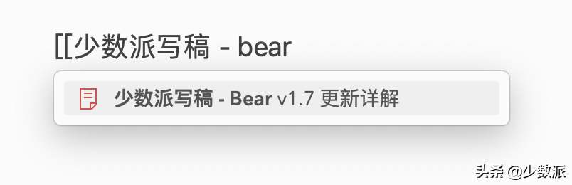 作为高阶用法而存在,熊掌记中的笔记链接功能对于很多用户来说比较陌生。熊掌记 v1.7 改进了维基链接(wiki link)功能,如果我们修改了笔记标题,那么该笔记的维基链接也会自动更新。维基链接的实现方式为,在笔记中输入两个方括号 [[,然后输入被链接的笔记标题。