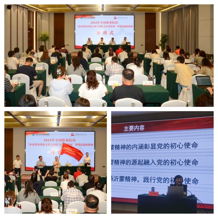 为全面落实新时代学校思政课建设推进会部署要求,扎实推动职业院校“大思政课”建设高质量发展,7月15日至7月21日,由山东电子职业技术学院主办、沂蒙精神教育培训中心协办的2024年全国职业院校“传承优秀传统文化 弘扬红色沂蒙精神”暑期实践研修班成功举办。来自全国12个省市、21所职业院校的65名思政课教师参加活动。