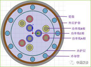 图1展示了典型功率电缆几何定义,功率电缆规格多,主题有功率线芯、护套、铠装、冷却管道等。