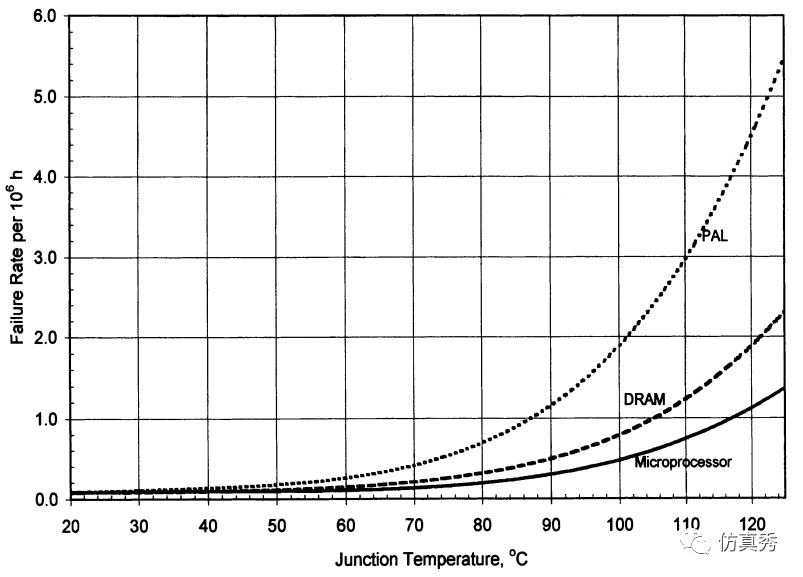 另外,设备的运行实践表明:随温度的增加,元器件的失效率呈指数增长,这在不同程度上降低了设备的可靠性,如下图所示。