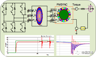 图8展示了考虑电机逆变器连接电缆上寄生参数对系统电磁兼容的影响和分析:“线缆线束设计工具包”参数化建模并求解得到分布参数,Maxwell输出ROM(包含全部参数的降阶模型)模型到Twin Builder系统平台中,输入输出端子连接逆变器和负载电机之间的电路。仿真结果表明,线缆分布参数对电机控制系统传导干扰EMC影响明显。