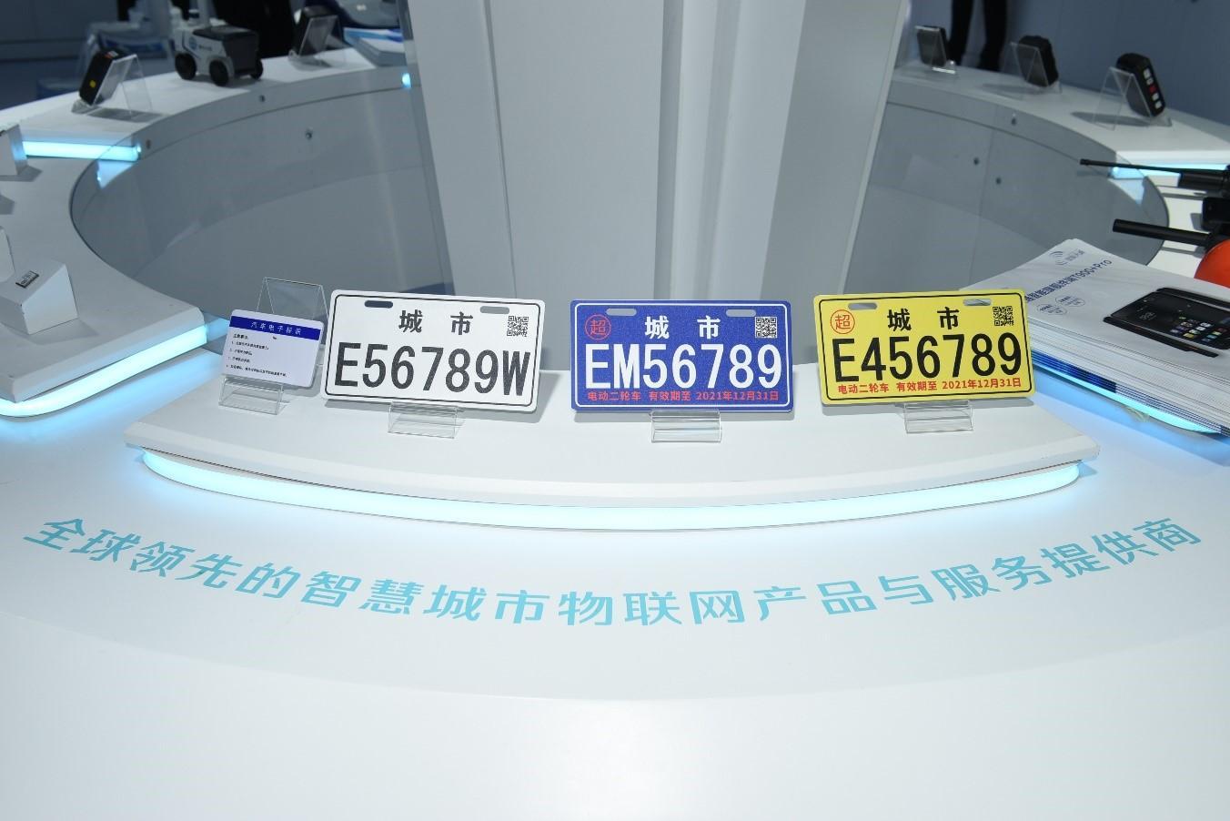 高新兴展示的不同种类电动自行车电子号牌