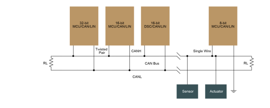图1.不同的CAN实现可以共存,这增加了CAN总线的灵活性