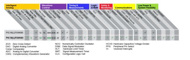 表2. PIC18 K83系列中独立于内核的外设可满足多种系统需求