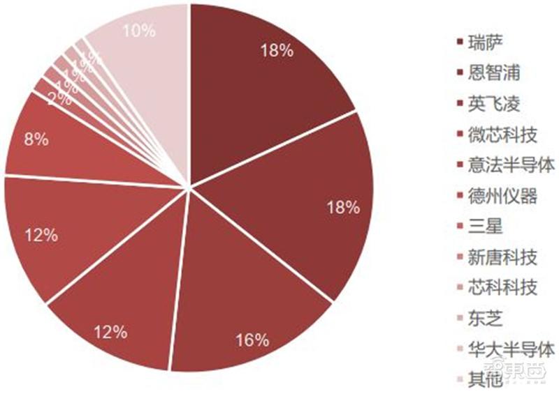 据Strategy Analysis数据,全球以及国内车载MCU市场主要由恩智浦、瑞萨、英飞凌、德州仪器、微芯科技占领,共占约85%市场份额。