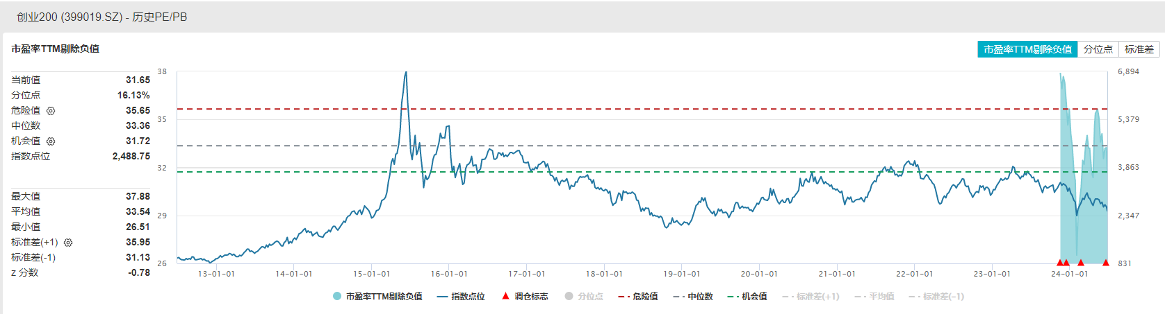 从估值来看,创业板中盘200指数当前市盈率处于历史较低水平 。截至6月25日收盘,该指数市盈率剔除负值为31.65倍,处于上市以来的16.13%分位点。