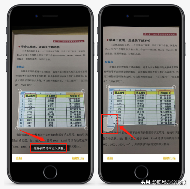 6、文档和手写体识别,意义是一样的,下面再来看看表格识别,这是专门用来识别表格的,先将纸质表格拍下来,然后调整识别区域。