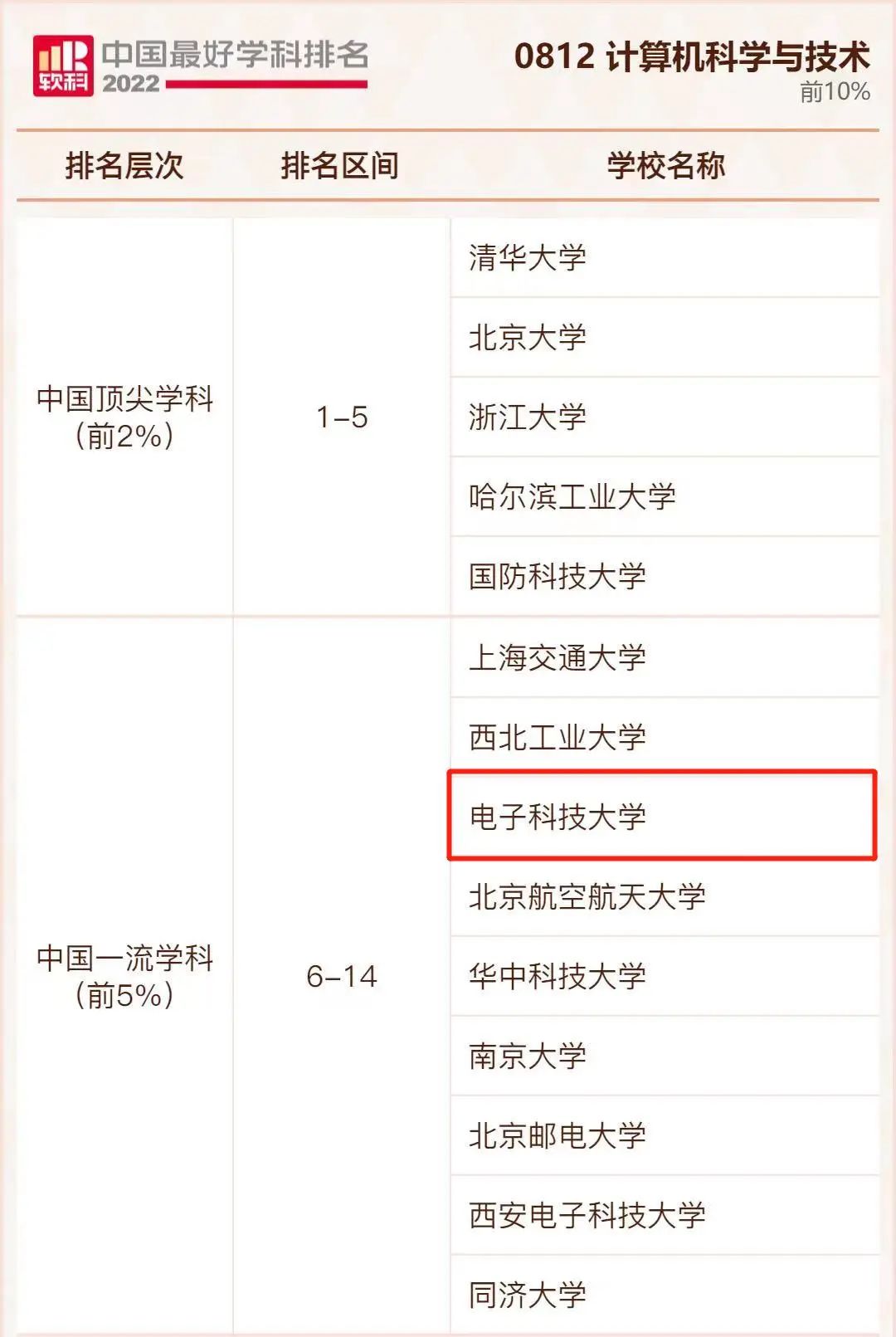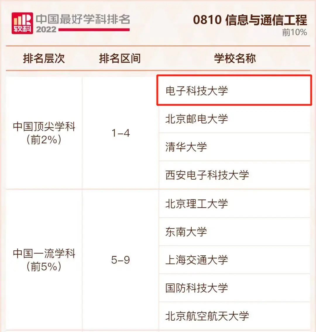 赞!2022软科中国最好学科排名发布,电子科技大学26个学科上榜!