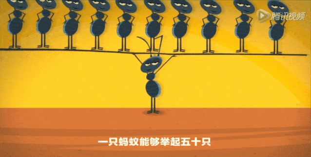 但是短片却提出了另外一个疑问:为什么一只蚂蚁能够举起 50 只同样大小的蚂蚁,而大象却连一头大象都举不起来?