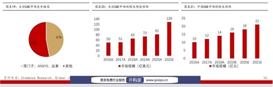 如果只看纯CAE产品市场的话,根据Credence Research数据,2020年预计全球CAE市场规模达到81亿美元,预计2025年达到 128亿美元,年均复合增速9.6%。