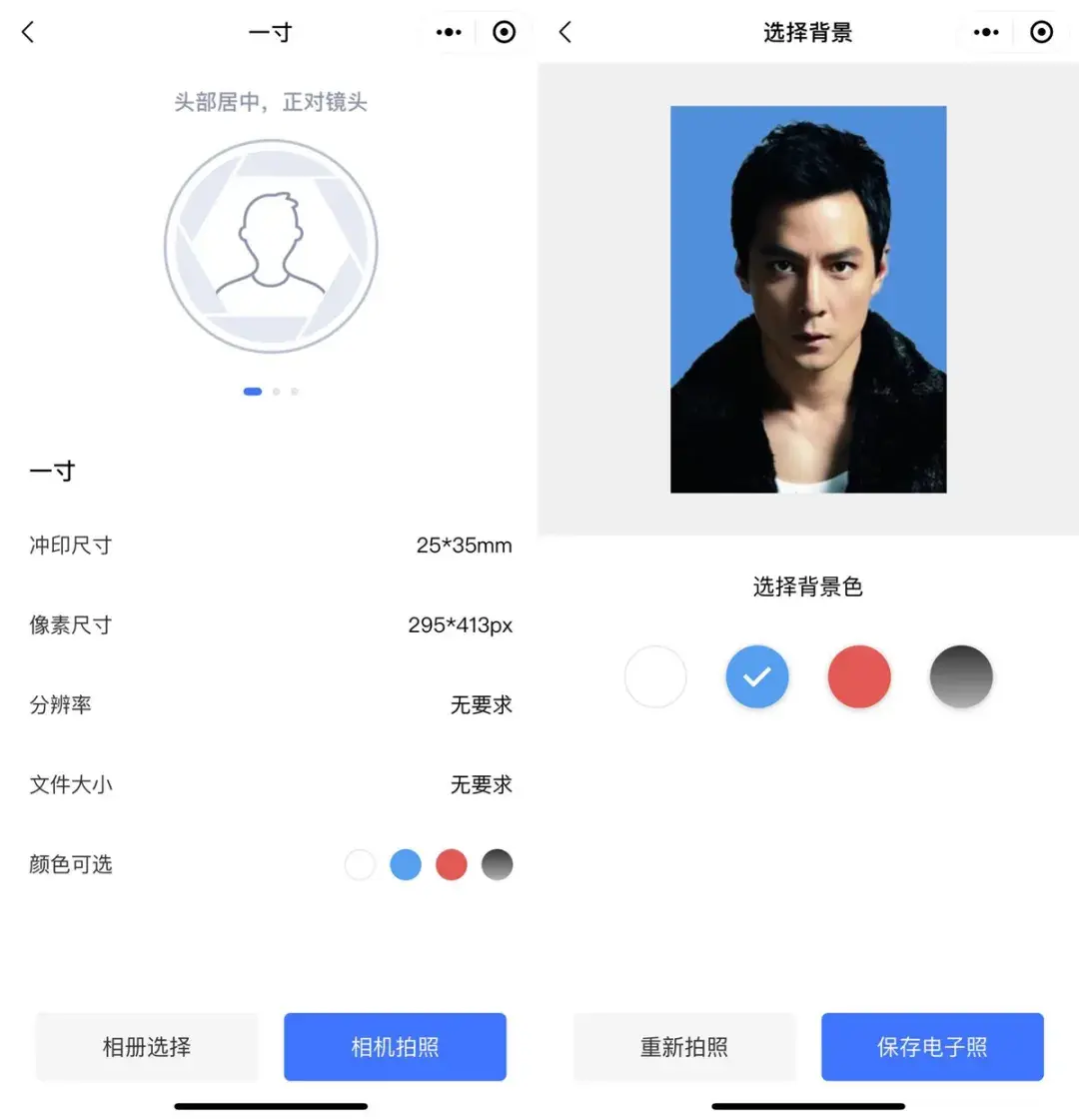 这个小程序支持多种规格尺寸,包括常见的一寸、二寸等。