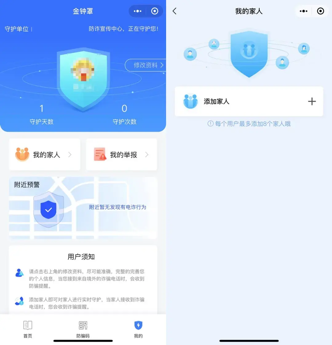 你还能够添加家人,让系统一并进行守护。