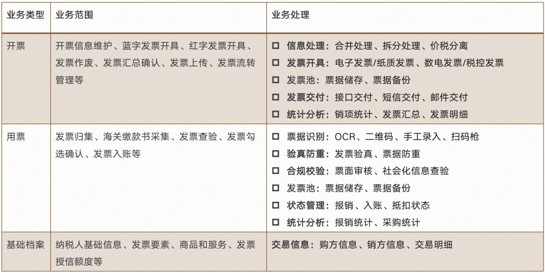 发票系统业务范围