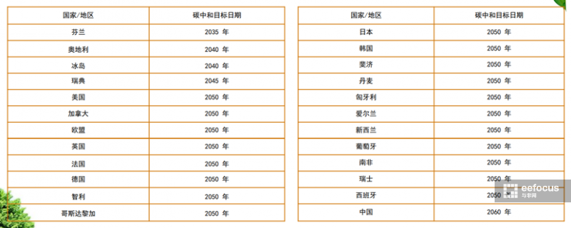 2021年11月初,新一轮国际能源气候大会在英国举办,会上确定了各国碳中和、碳达峰的时间表。根据表中的信息显示,我国要在2030年实现碳达峰,2060年实现碳中和。
